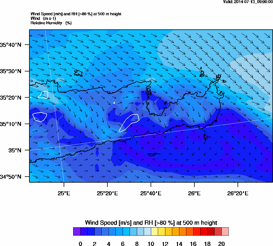 Graph 2: arw032.png - Wind Speed [m/s] and RH [>80%] at 500 m height