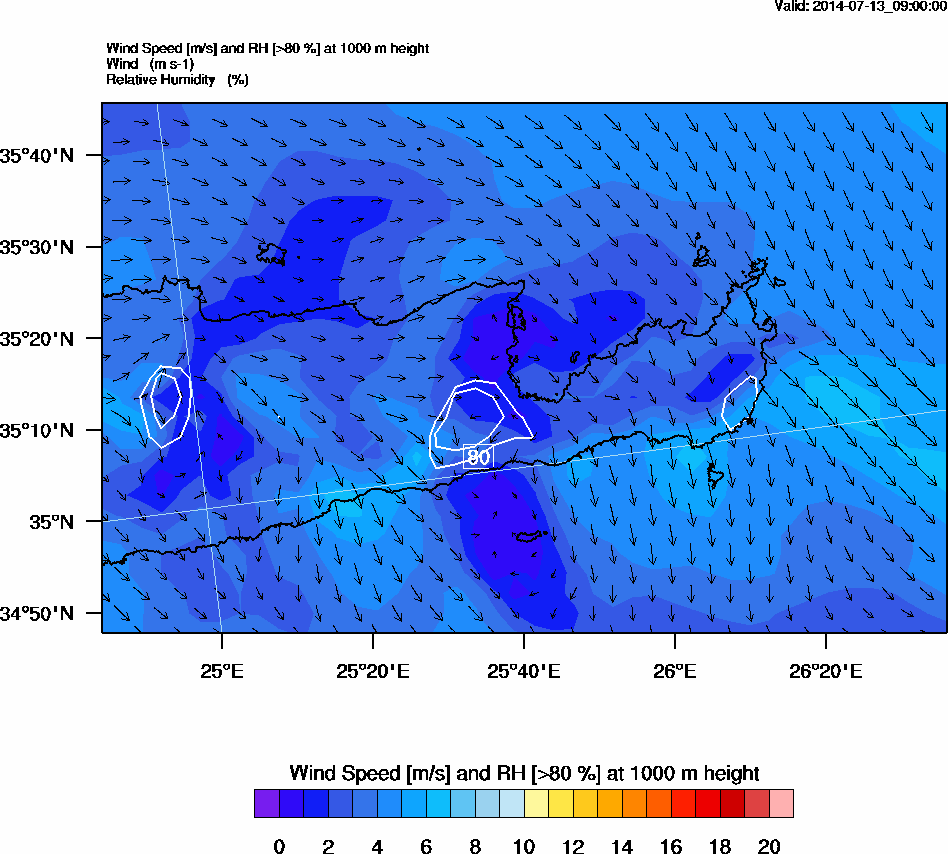 Graph 3: arw033.png - Wind Speed [m/s] and RH [>80%] at 1000 m height