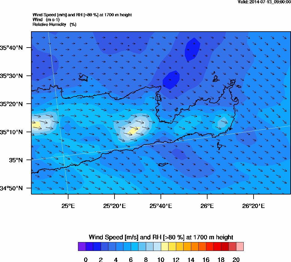 Graph 5: arw035.png - Wind Speed [m/s] and RH [>80%] at 1700 m height