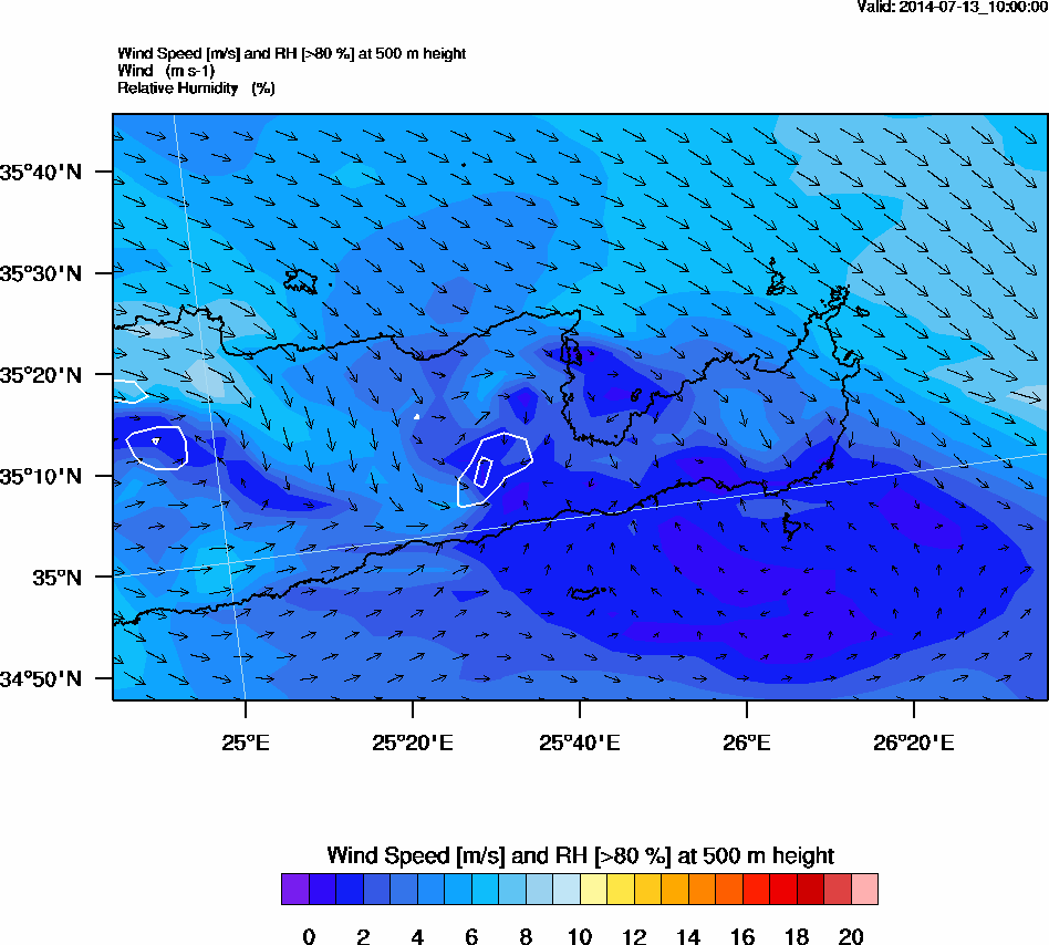Graph 2: arw037.png - Wind Speed [m/s] and RH [>80%] at 500 m height
