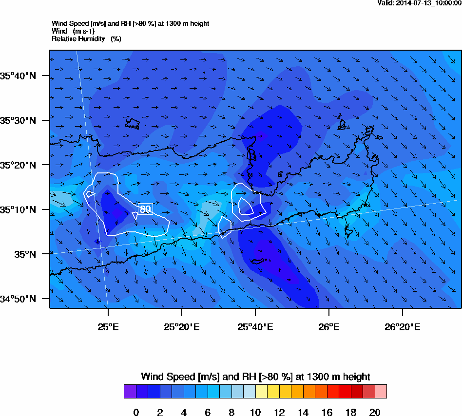 Graph 4: arw039.png - Wind Speed [m/s] and RH [>80%] at 1300 m height