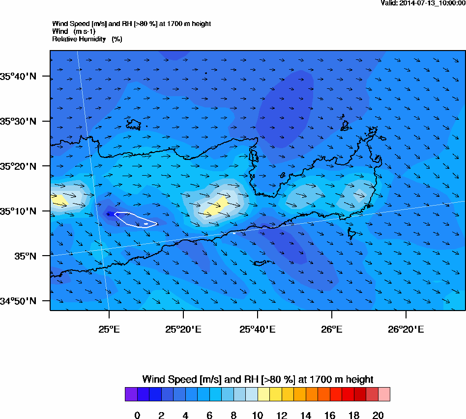 Graph 5: arw040.png - Wind Speed [m/s] and RH [>80%] at 1700 m height