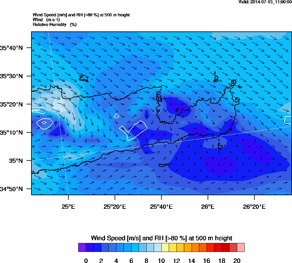 Graph 2: arw042.png - Wind Speed [m/s] and RH [>80%] at 500 m height