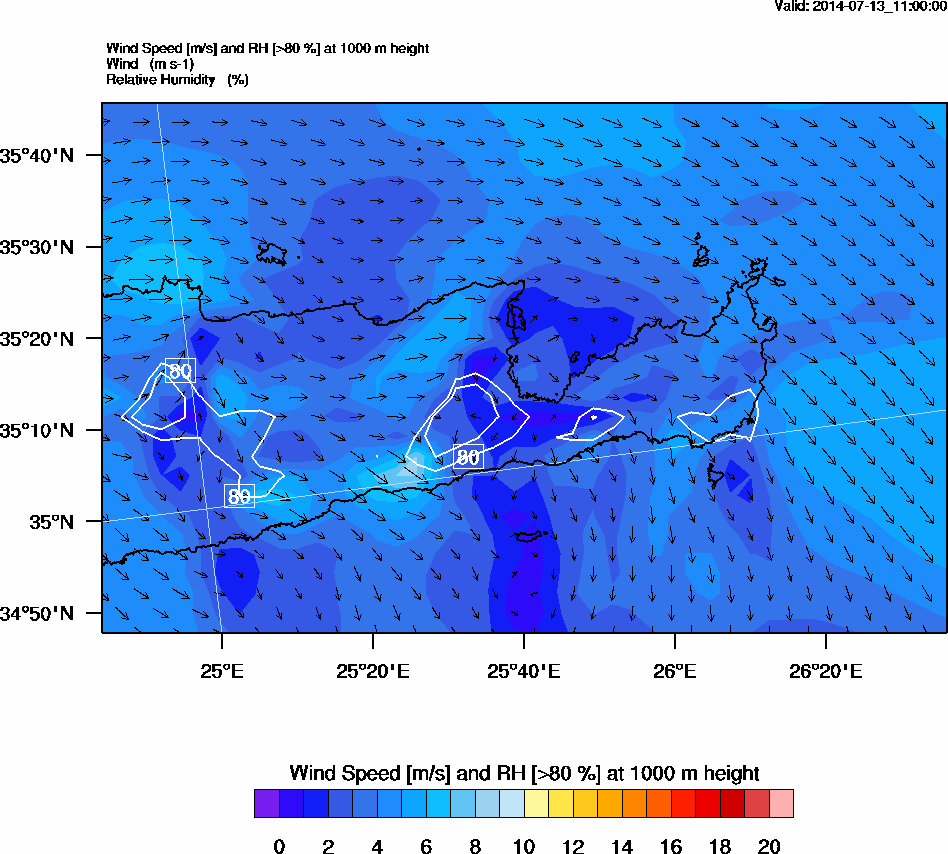 Graph 3: arw043.png - Wind Speed [m/s] and RH [>80%] at 1000 m height