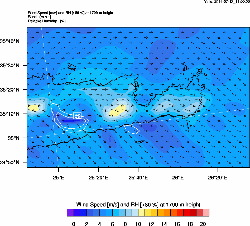 Graph 5: arw045.png - Wind Speed [m/s] and RH [>80%] at 1700 m height