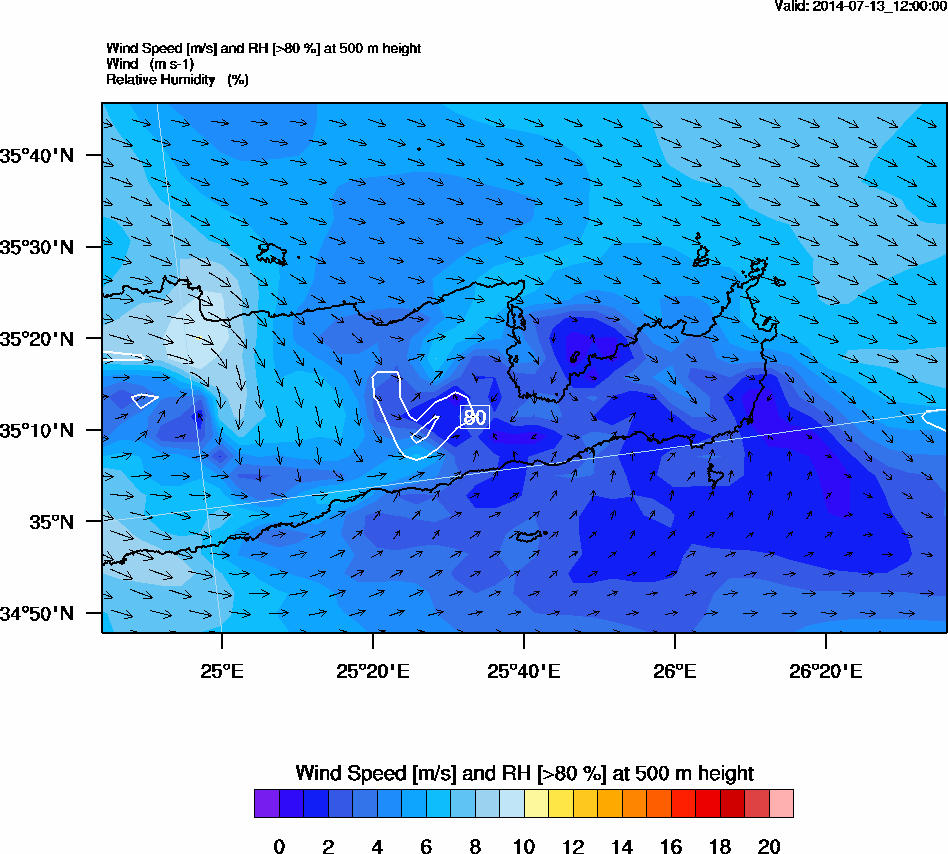 Graph 2: arw047.png - Wind Speed [m/s] and RH [>80%] at 500 m height