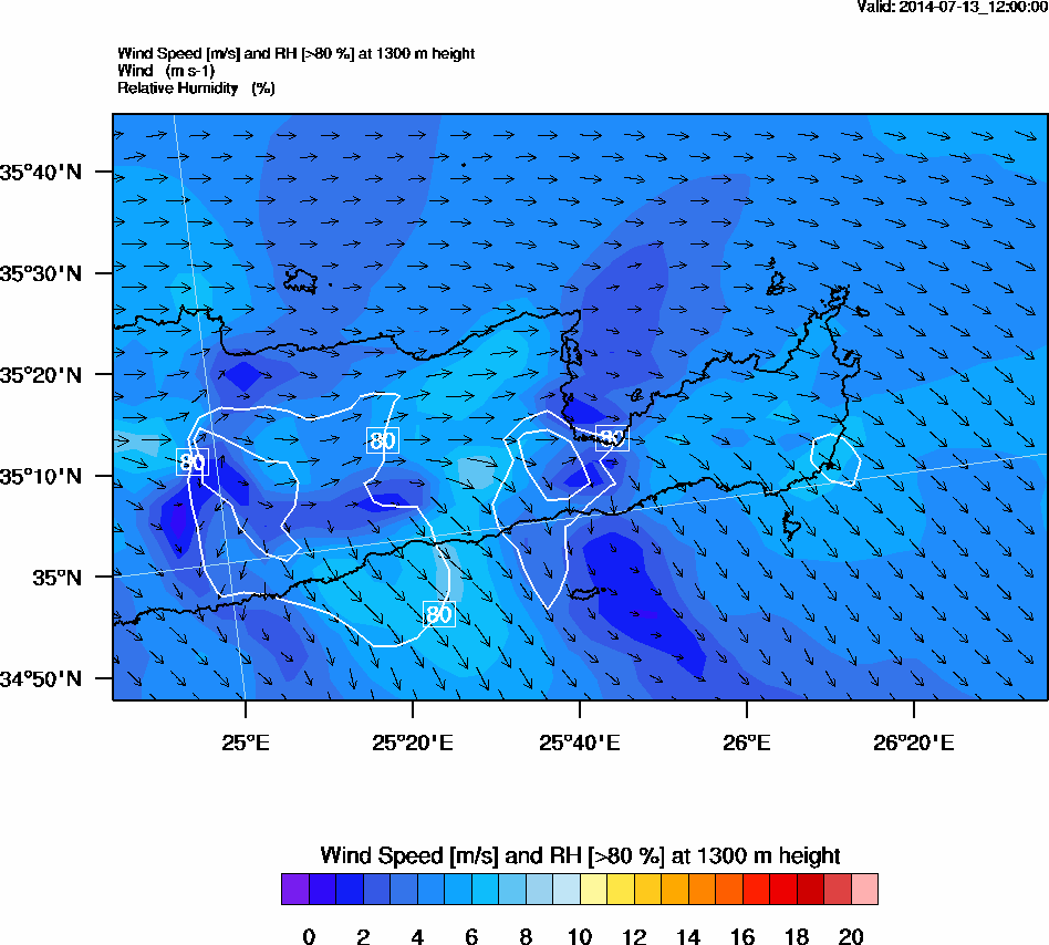 Graph 4: arw049.png - Wind Speed [m/s] and RH [>80%] at 1300 m height