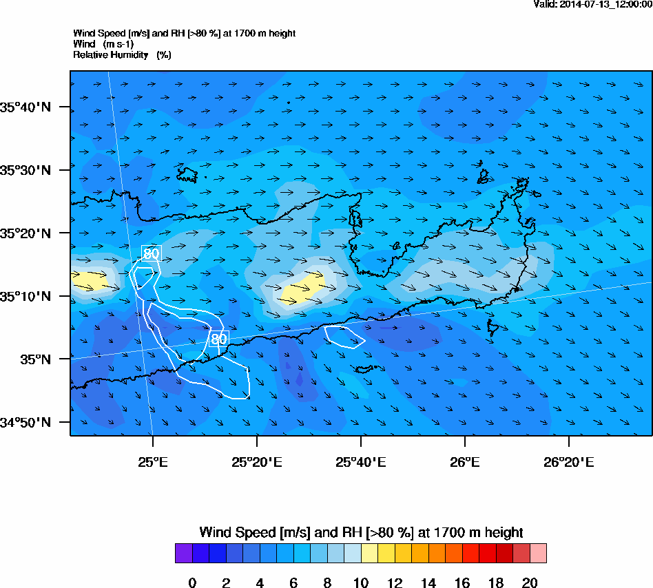 Graph 5: arw050.png - Wind Speed [m/s] and RH [>80%] at 1700 m height