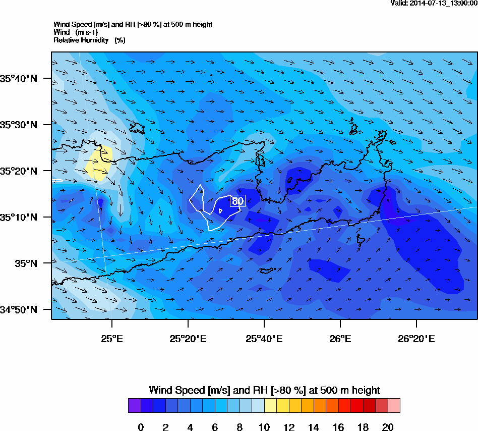Graph 2: arw052.png - Wind Speed [m/s] and RH [>80%] at 500 m height