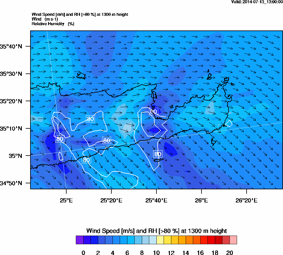 Graph 4: arw054.png - Wind Speed [m/s] and RH [>80%] at 1300 m height