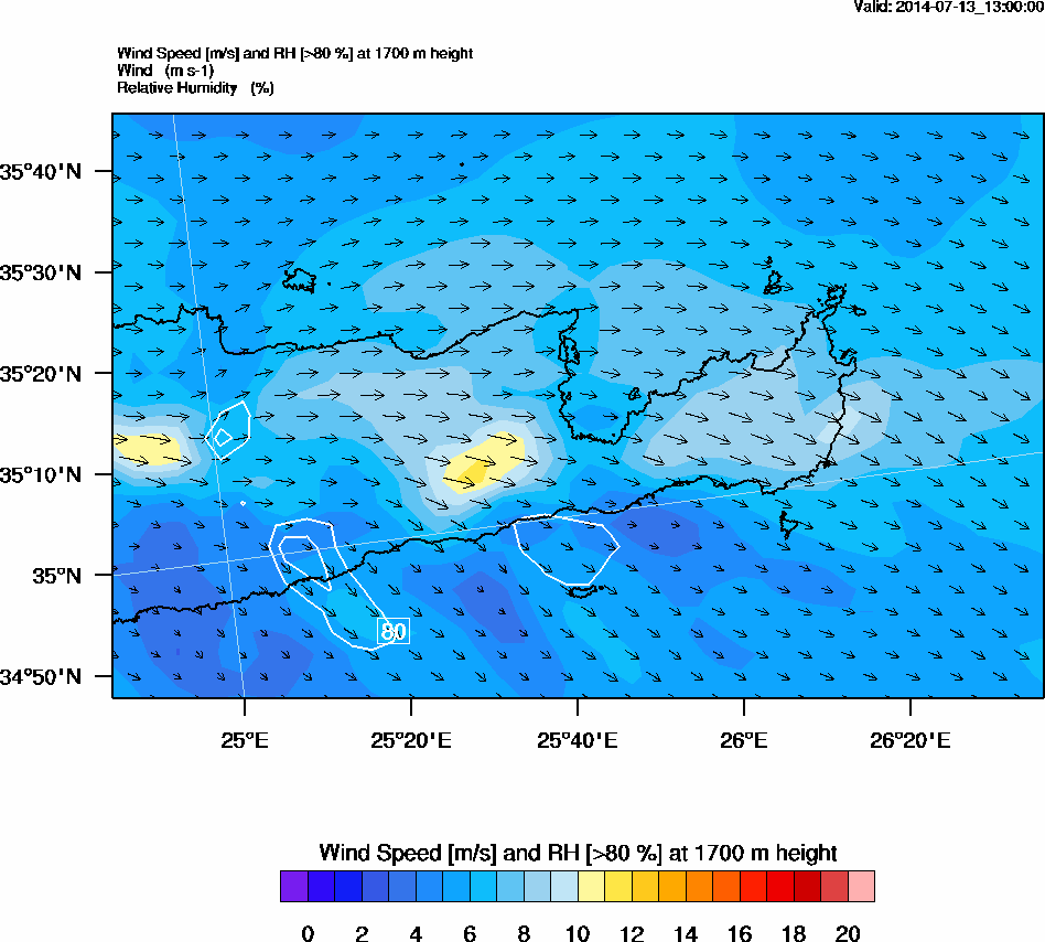 Graph 5: arw055.png - Wind Speed [m/s] and RH [>80%] at 1700 m height