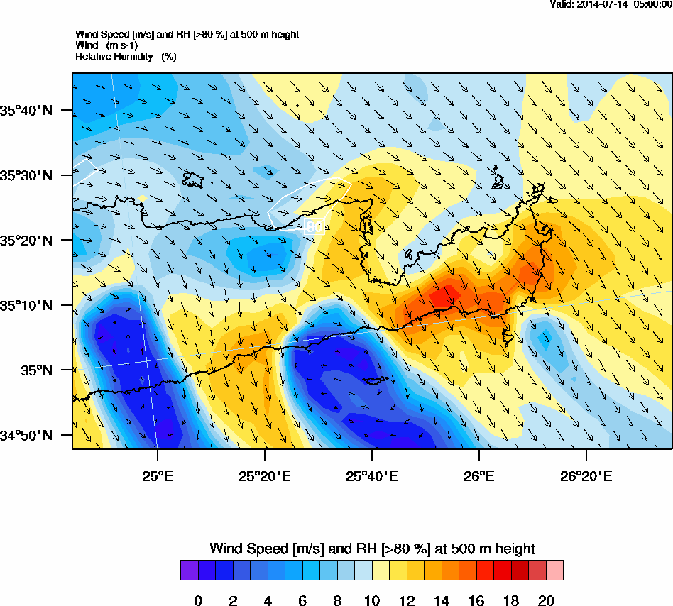 Graph 2: arw012.png - Wind Speed [m/s] and RH [>80%] at 500 m height