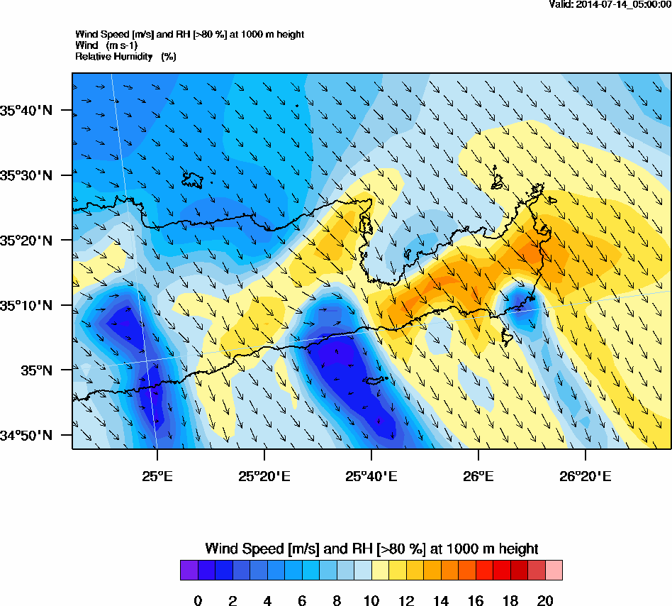 Graph 3: arw013.png - Wind Speed [m/s] and RH [>80%] at 1000 m height