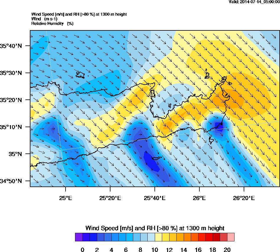 Graph 4: arw014.png - Wind Speed [m/s] and RH [>80%] at 1300 m height
