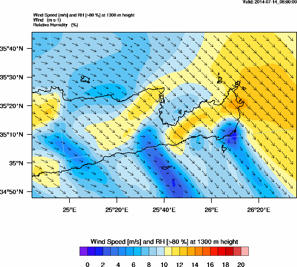 Graph 4: arw019.png - Wind Speed [m/s] and RH [>80%] at 1300 m height