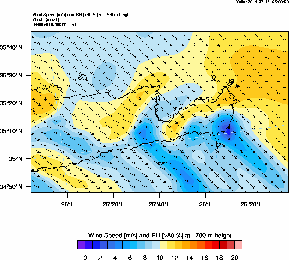 Graph 5: arw020.png - Wind Speed [m/s] and RH [>80%] at 1700 m height