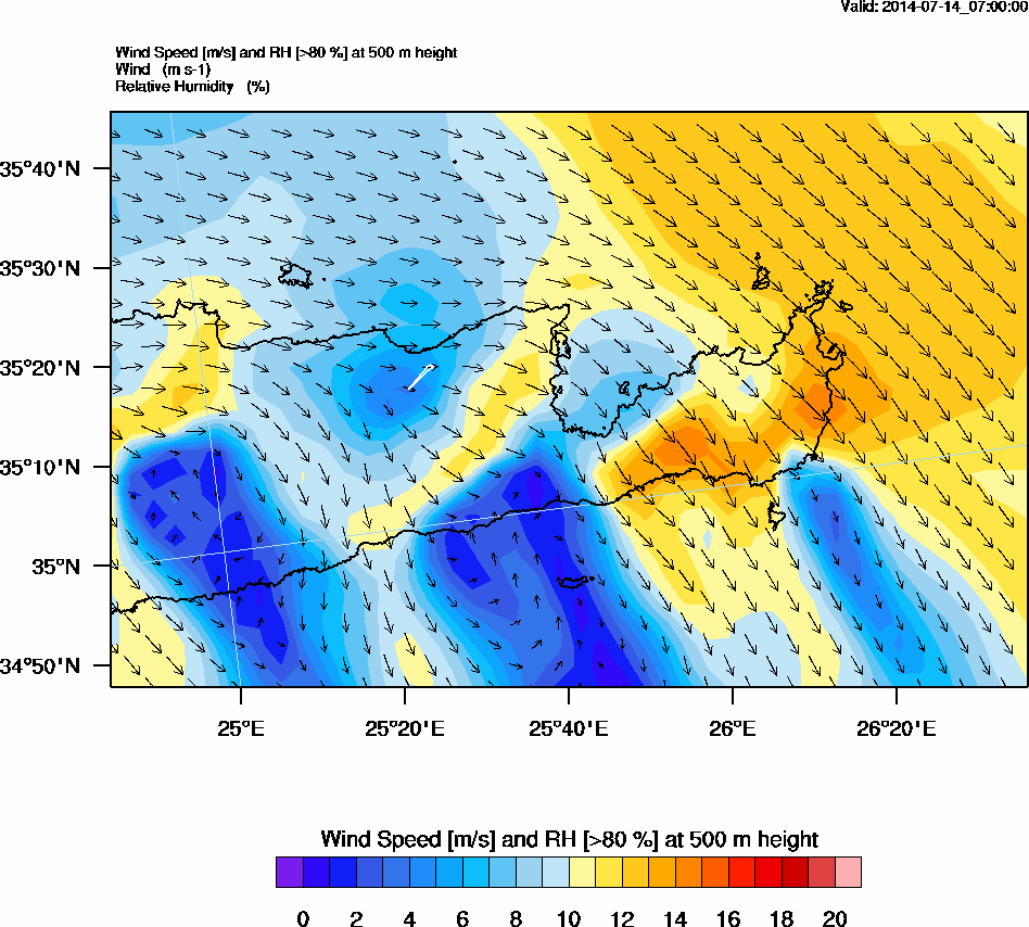 Graph 2: arw022.png - Wind Speed [m/s] and RH [>80%] at 500 m height