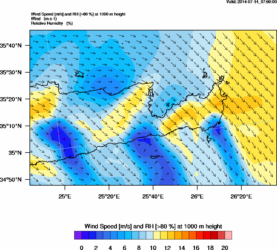 Graph 3: arw023.png - Wind Speed [m/s] and RH [>80%] at 1000 m height