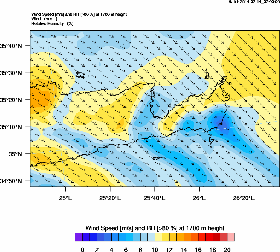 Graph 5: arw025.png - Wind Speed [m/s] and RH [>80%] at 1700 m height