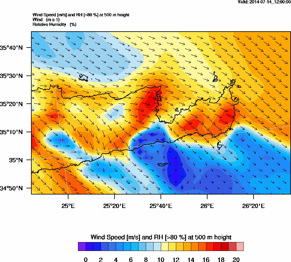 Graph 2: arw047.png - Wind Speed [m/s] and RH [>80%] at 500 m height