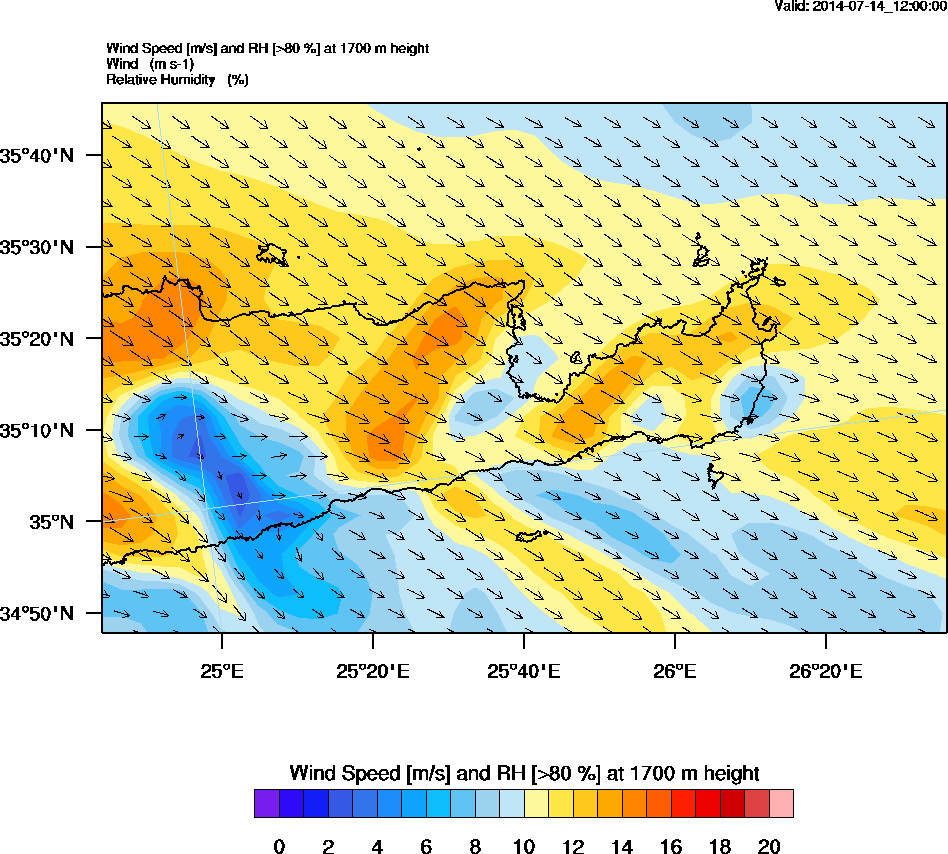 Graph 5: arw050.png - Wind Speed [m/s] and RH [>80%] at 1700 m height