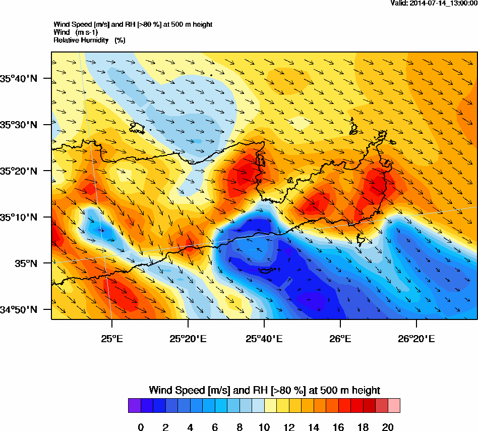 Graph 2: arw052.png - Wind Speed [m/s] and RH [>80%] at 500 m height