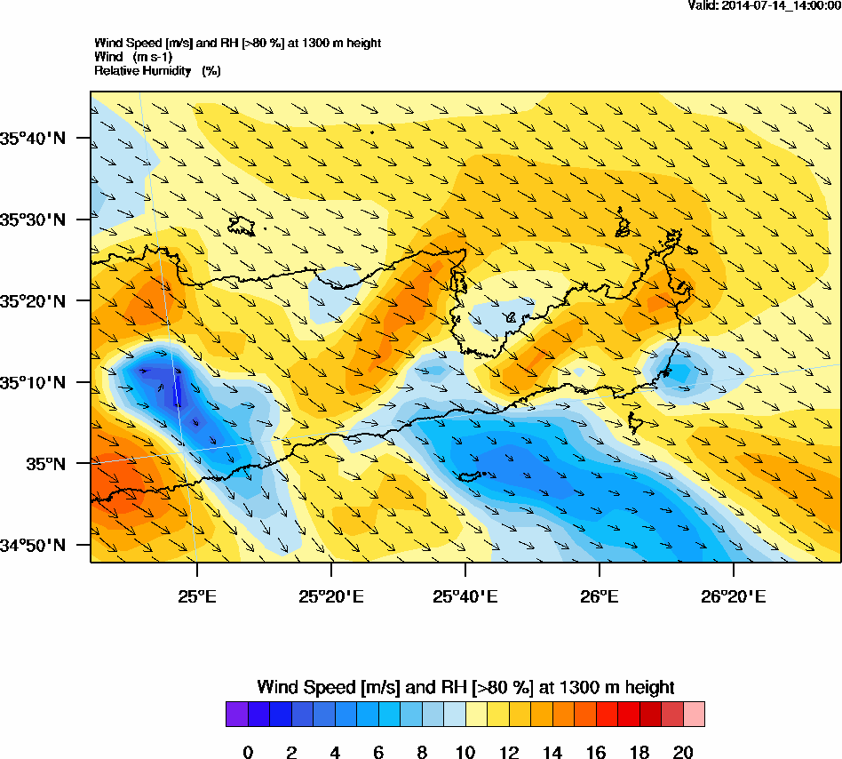 Graph 4: arw059.png - Wind Speed [m/s] and RH [>80%] at 1300 m height