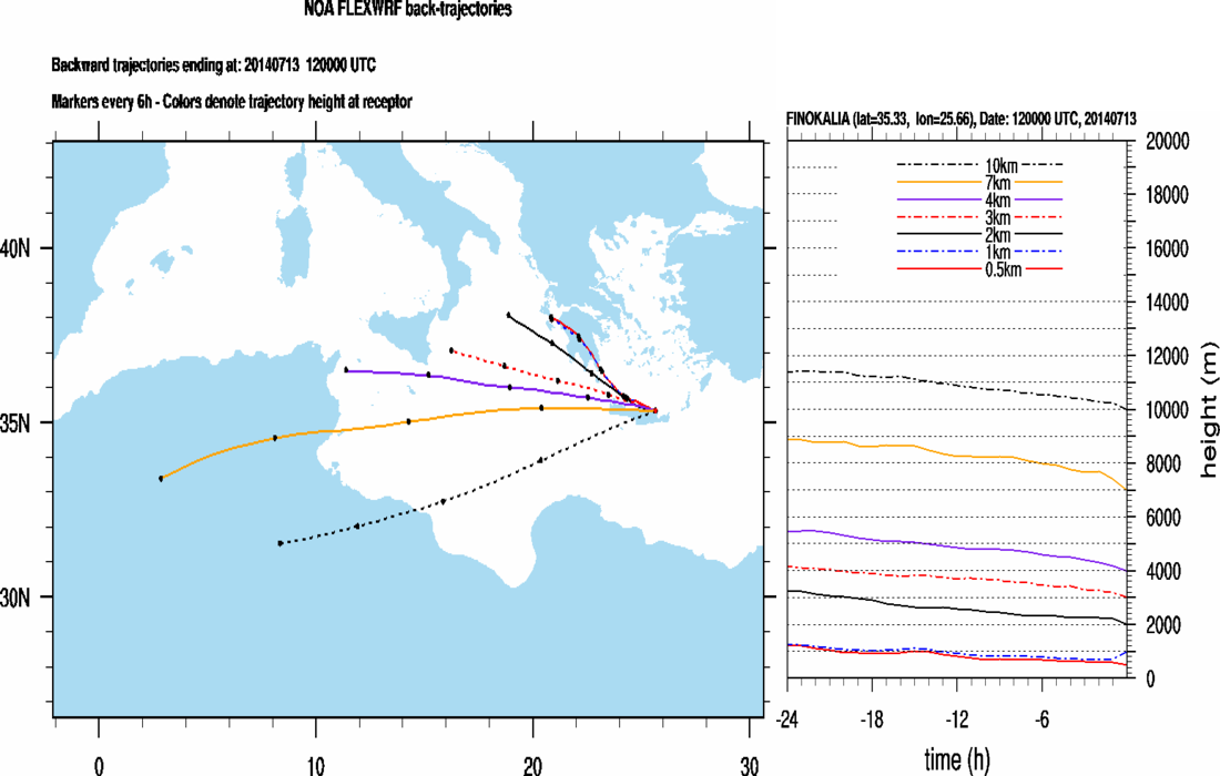 Graph 1: Backtrajectories forecast for Finokalia (+ 24 h)