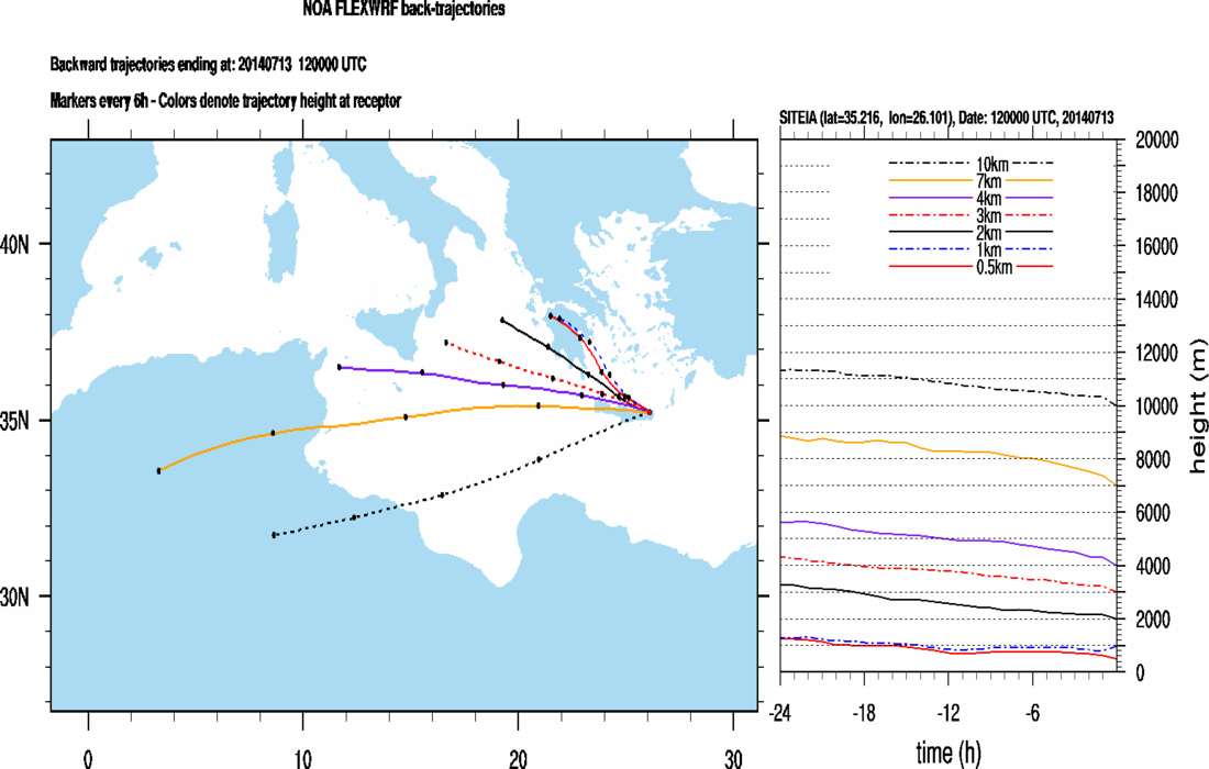 Graph 4: Backtrajectories forecast for Sitia (+ 24 h)