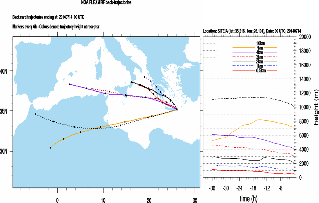 Graph 2: Backtrajectories forecast for Finokalia (+ 36 h)