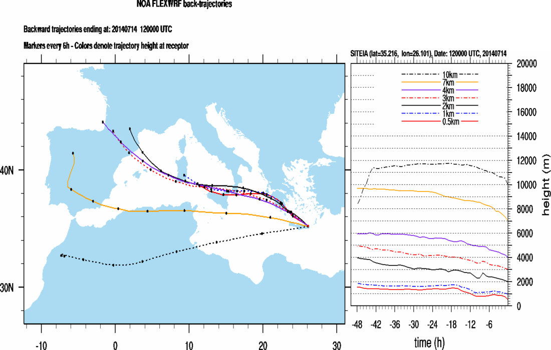 Graph 6: Backtrajectories forecast for Sitia (+ 48 h)