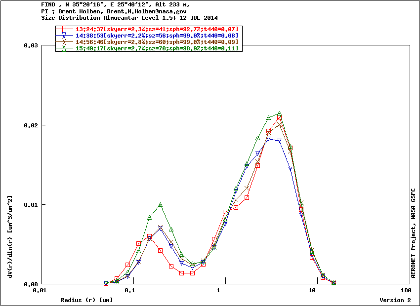 Graph 1: Aerosol volume size distribution -Level 1.5