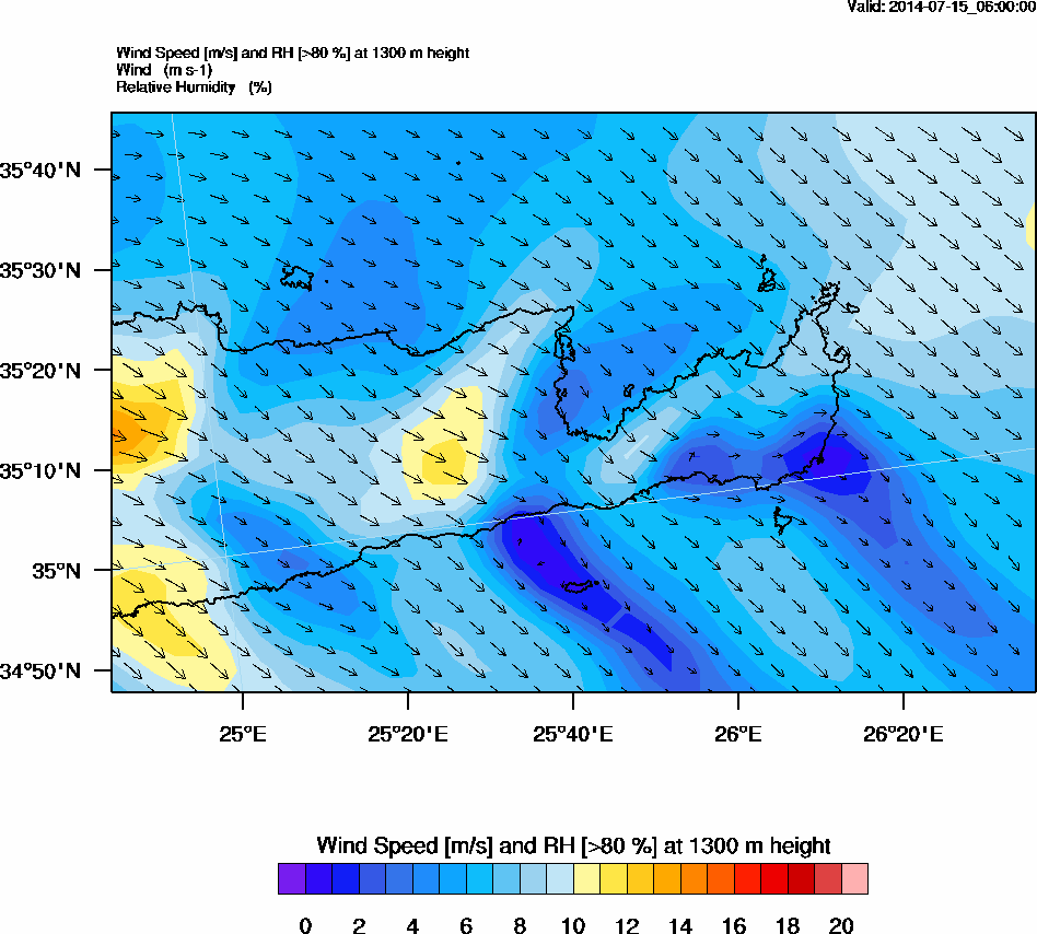 Graph 4: arw019.png - Wind Speed [m/s] and RH [>80%] at 1300 m height