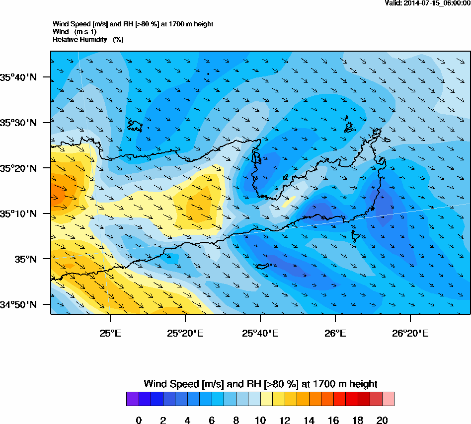 Graph 5: arw020.png - Wind Speed [m/s] and RH [>80%] at 1700 m height