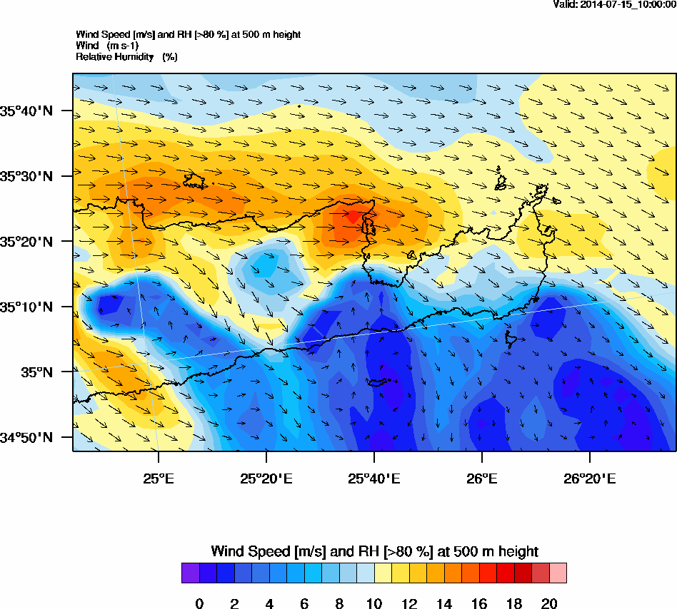 Graph 2: arw037.png - Wind Speed [m/s] and RH [>80%] at 500 m height