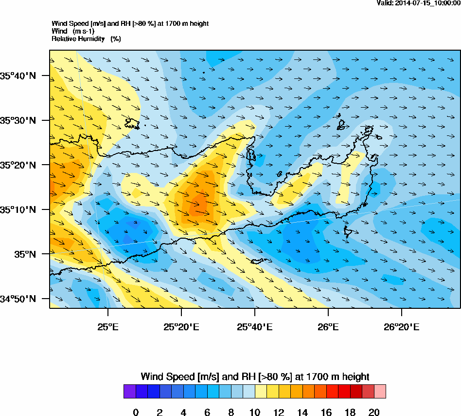 Graph 5: arw040.png - Wind Speed [m/s] and RH [>80%] at 1700 m height
