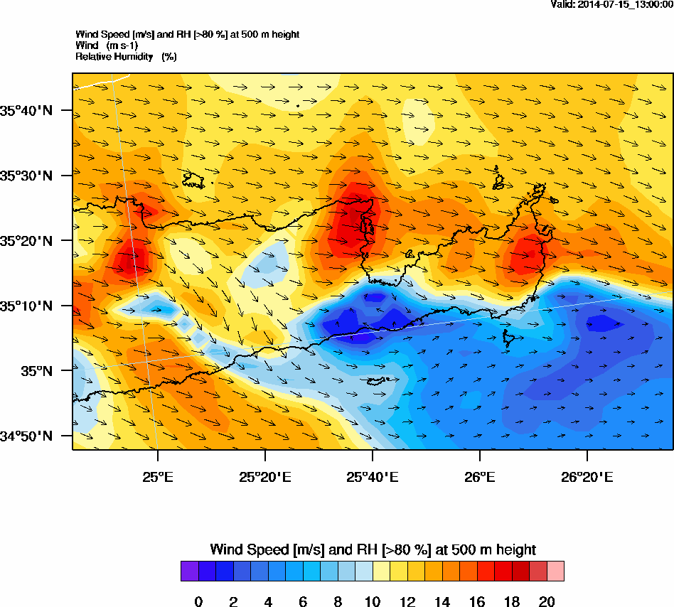 Graph 2: arw052.png - Wind Speed [m/s] and RH [>80%] at 500 m height