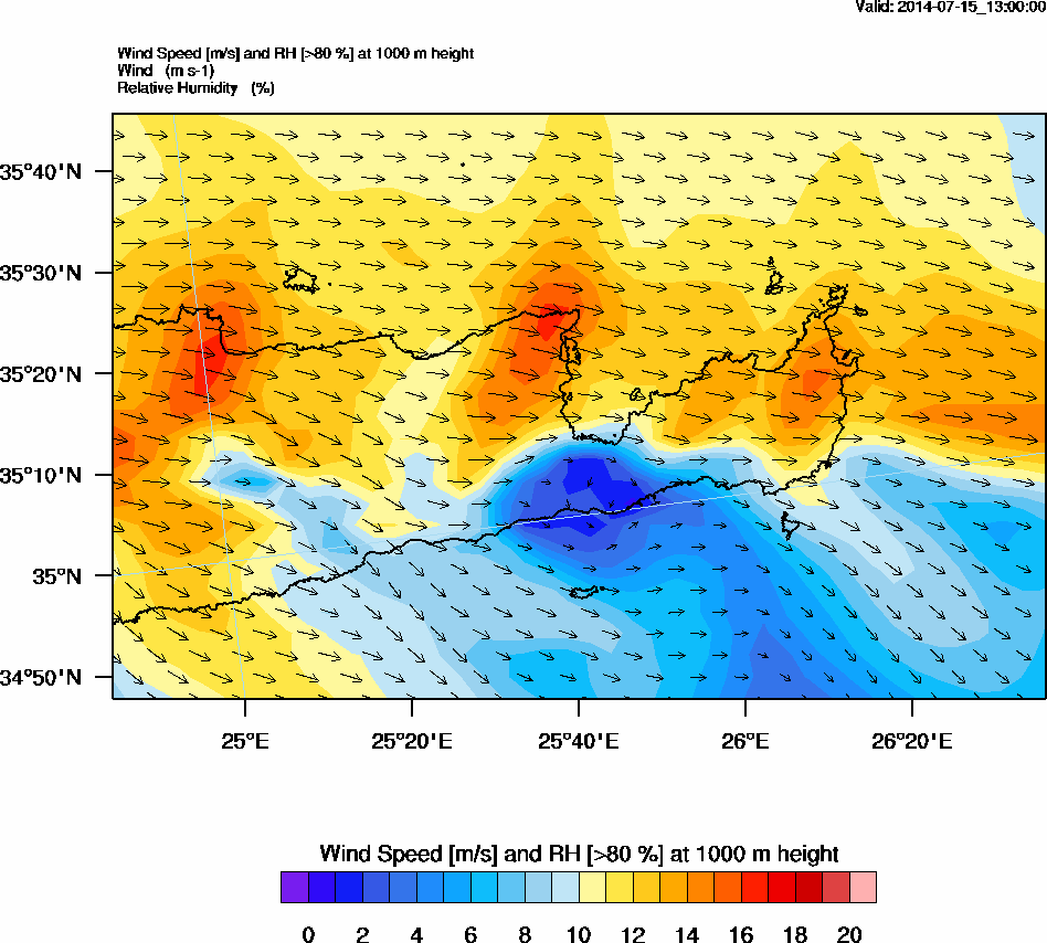 Graph 3: arw053.png - Wind Speed [m/s] and RH [>80%] at 1000 m height