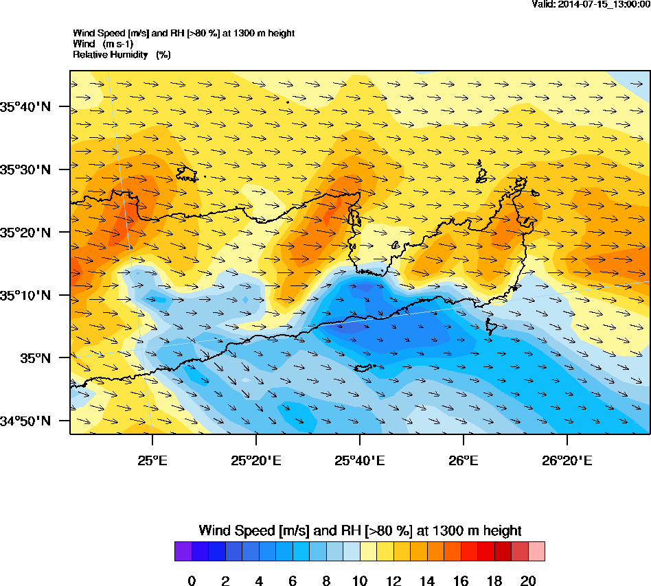Graph 4: arw054.png - Wind Speed [m/s] and RH [>80%] at 1300 m height