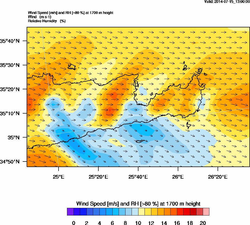Graph 5: arw055.png - Wind Speed [m/s] and RH [>80%] at 1700 m height