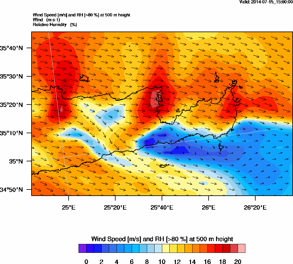 Graph 2: arw062.png - Wind Speed [m/s] and RH [>80%] at 500 m height