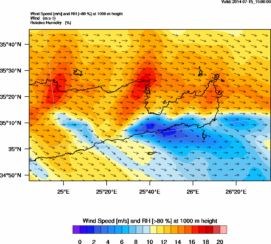 Graph 3: arw063.png - Wind Speed [m/s] and RH [>80%] at 1000 m height