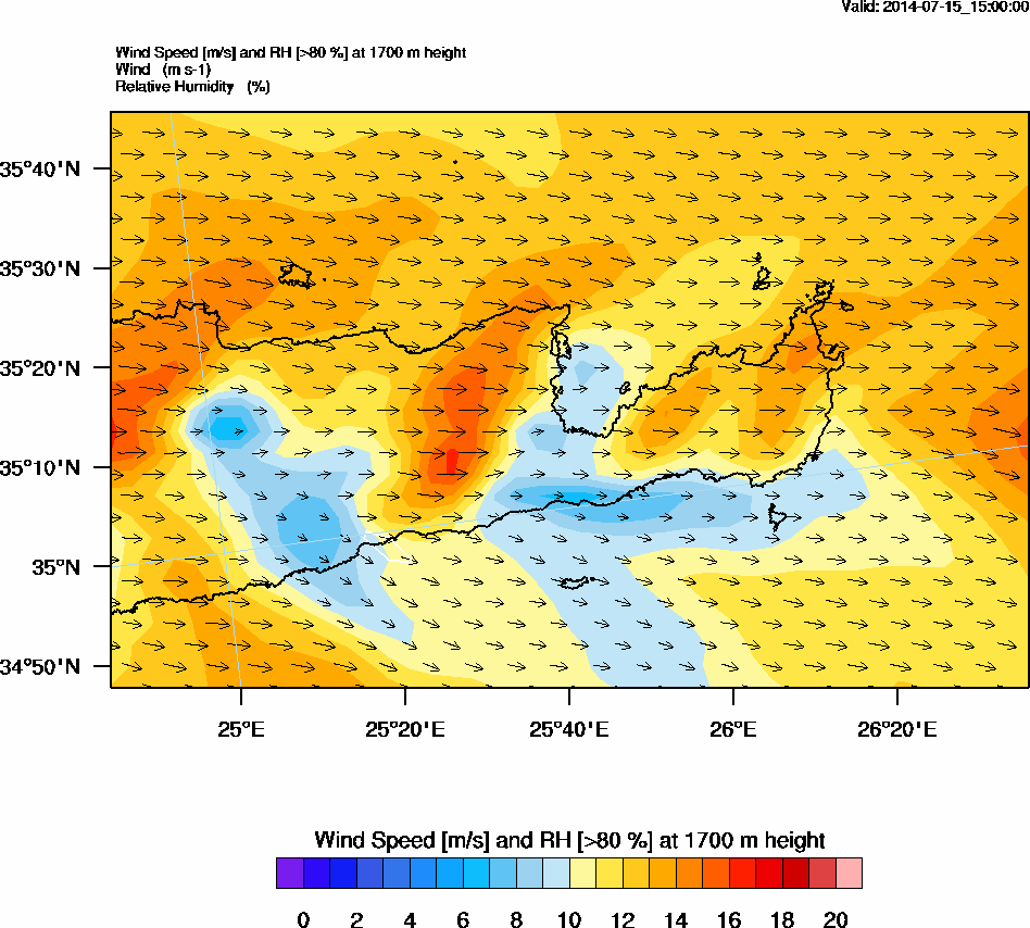 Graph 5: arw065.png - Wind Speed [m/s] and RH [>80%] at 1700 m height