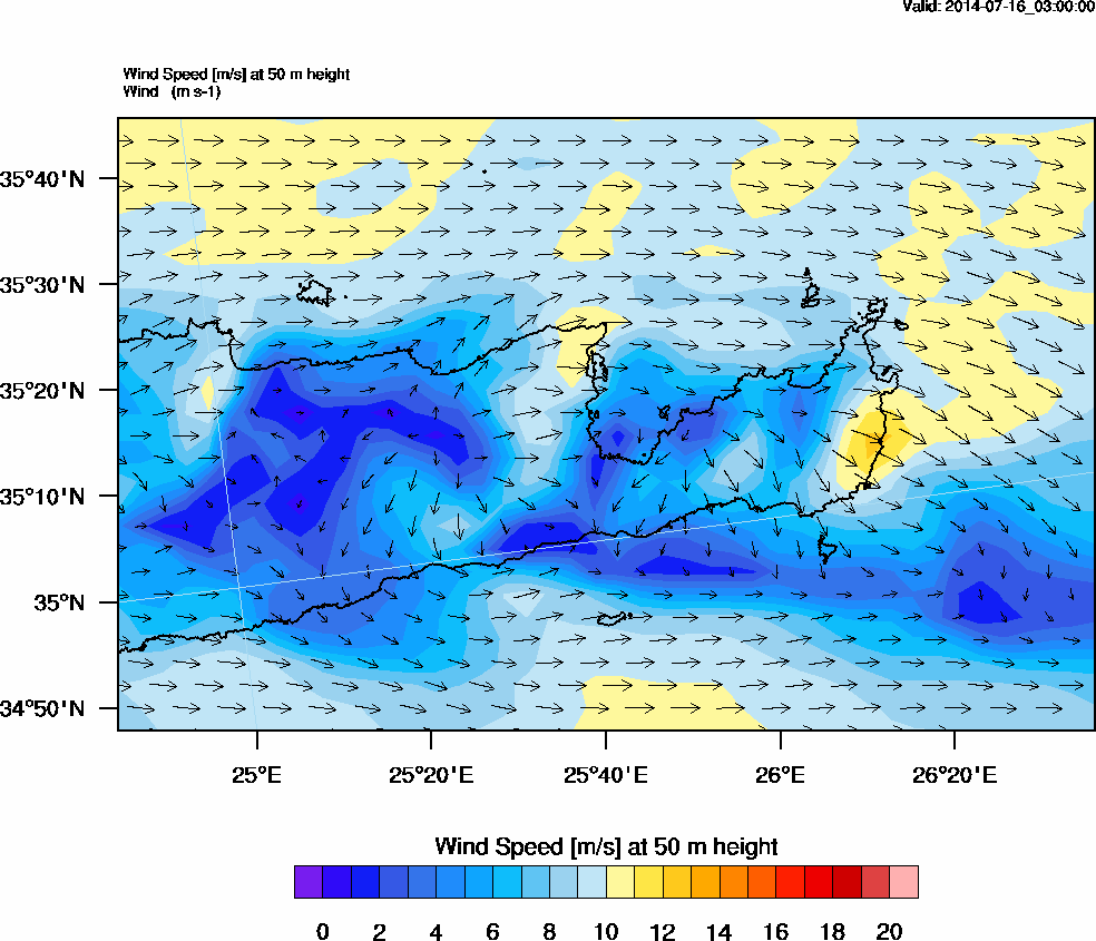 Graph 1: arw001.png - Wind Speed [m/s] at 50 m height