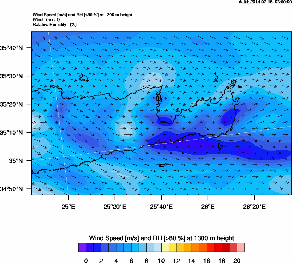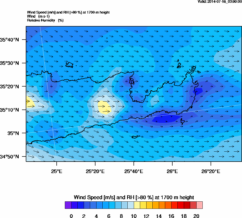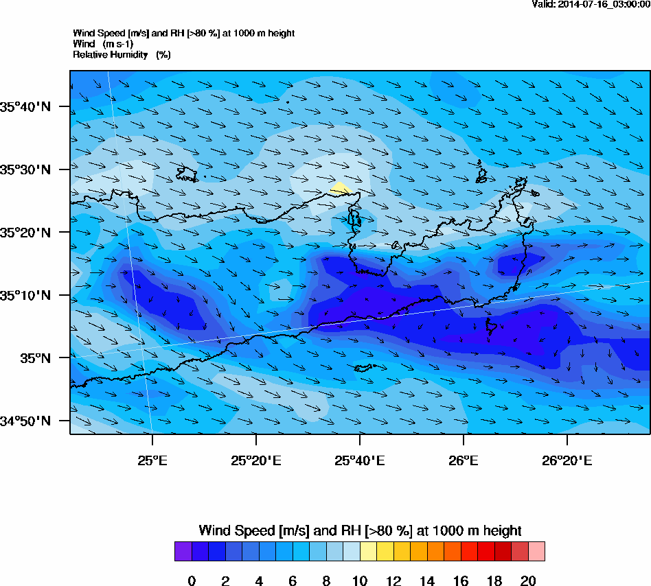 Graph 3: arw003.png - Wind Speed [m/s] and RH [>80%] at 1000 m height