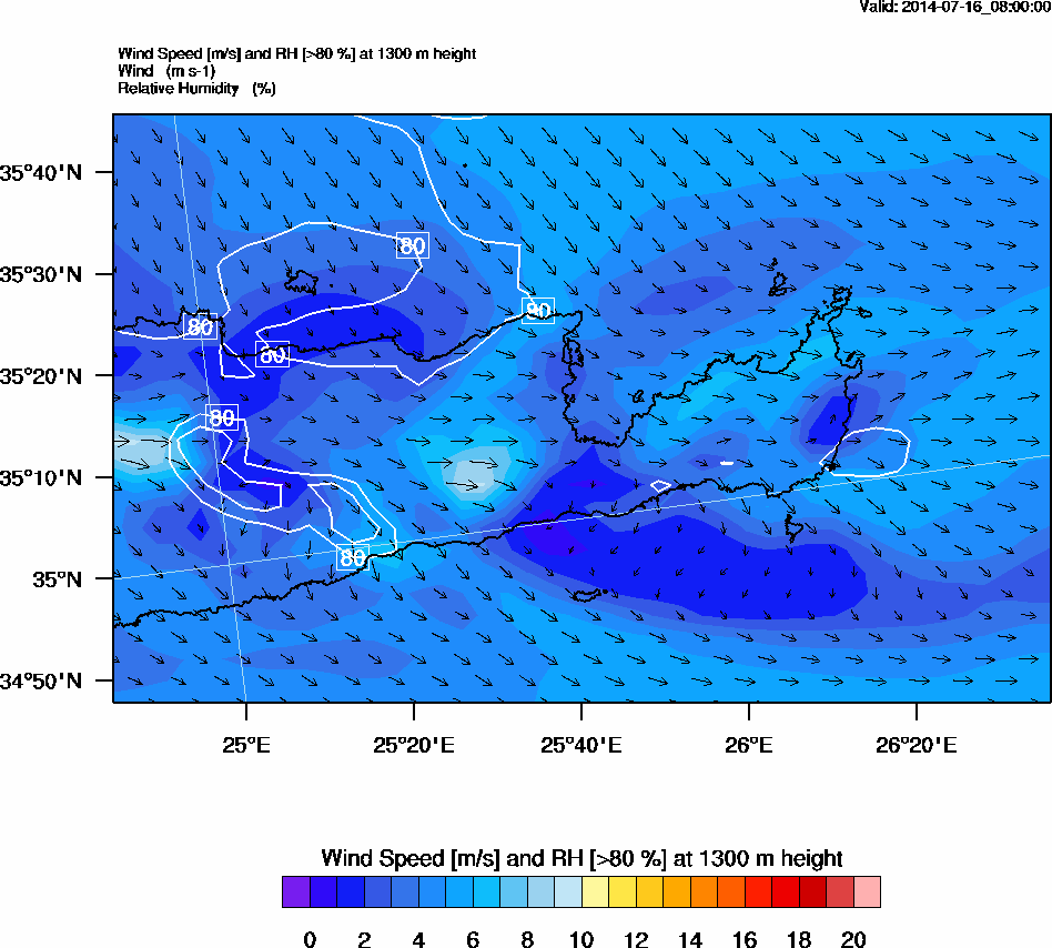 Graph 4: arw029.png - Wind Speed [m/s] and RH [>80%] at 1300 m height