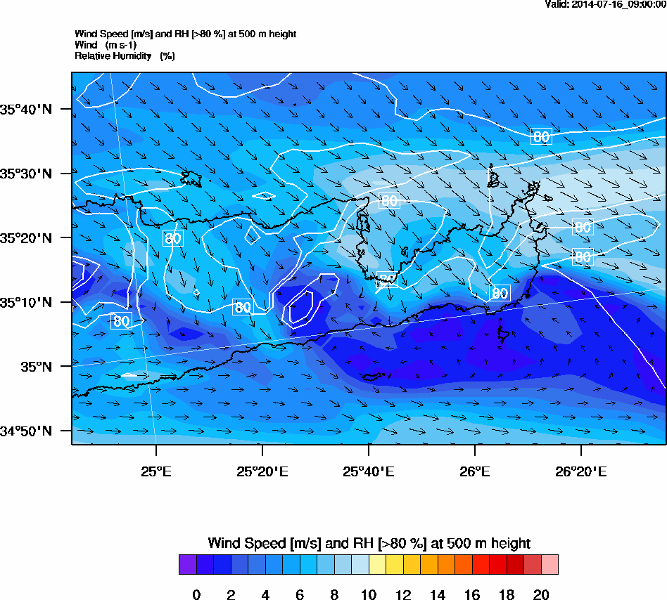 Graph 2: arw032.png - Wind Speed [m/s] and RH [>80%] at 500 m height