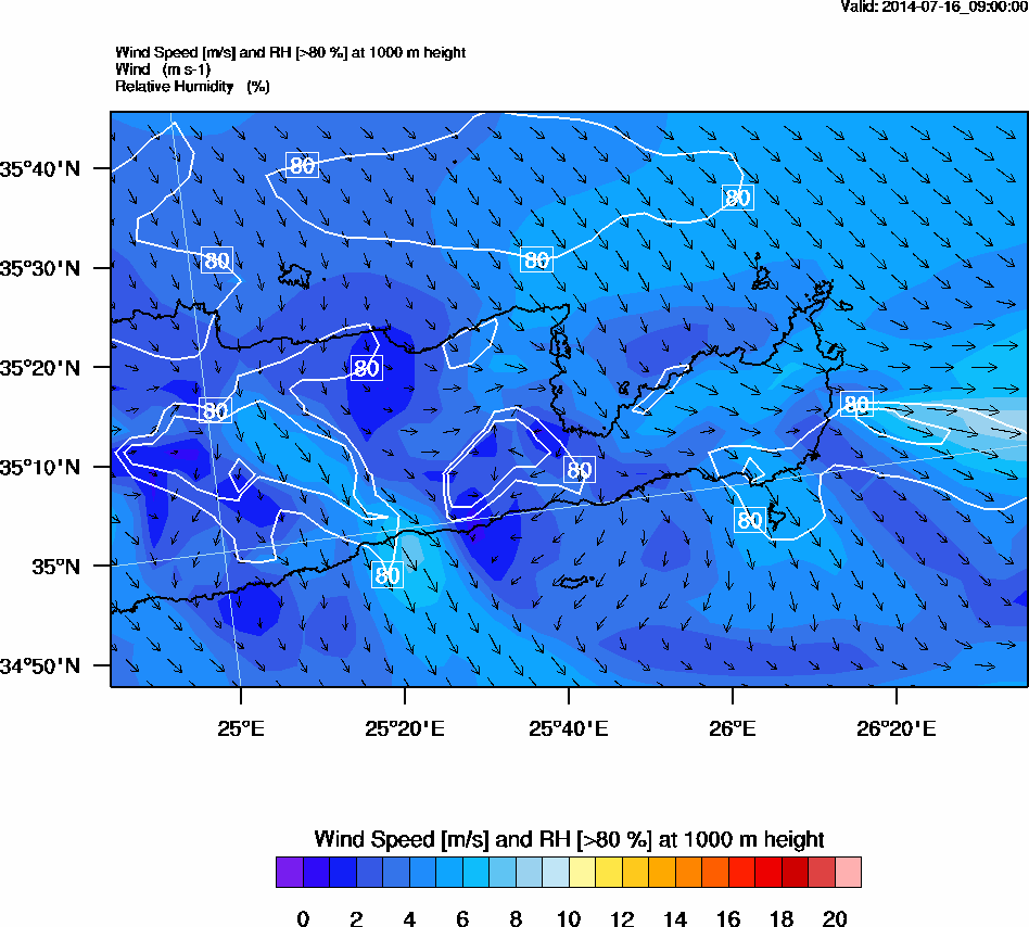 Graph 3: arw033.png - Wind Speed [m/s] and RH [>80%] at 1000 m height