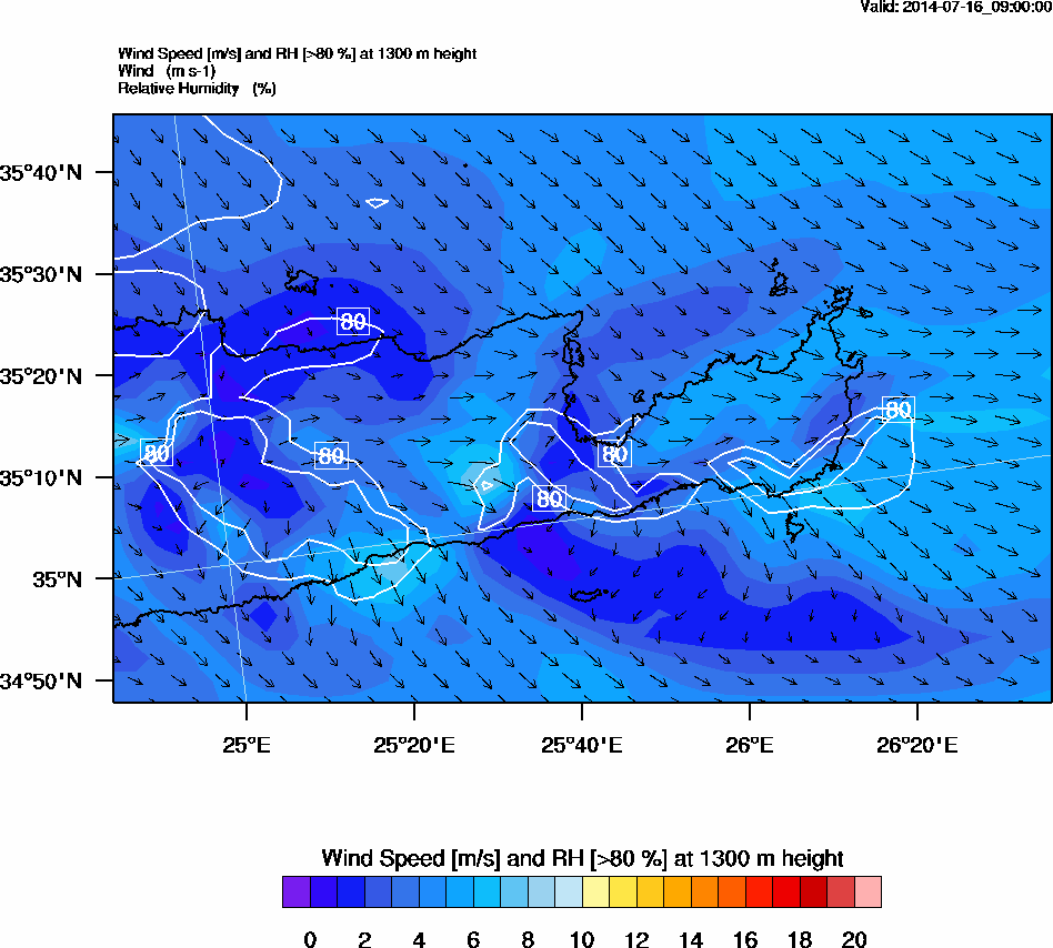 Graph 4: arw034.png - Wind Speed [m/s] and RH [>80%] at 1300 m height