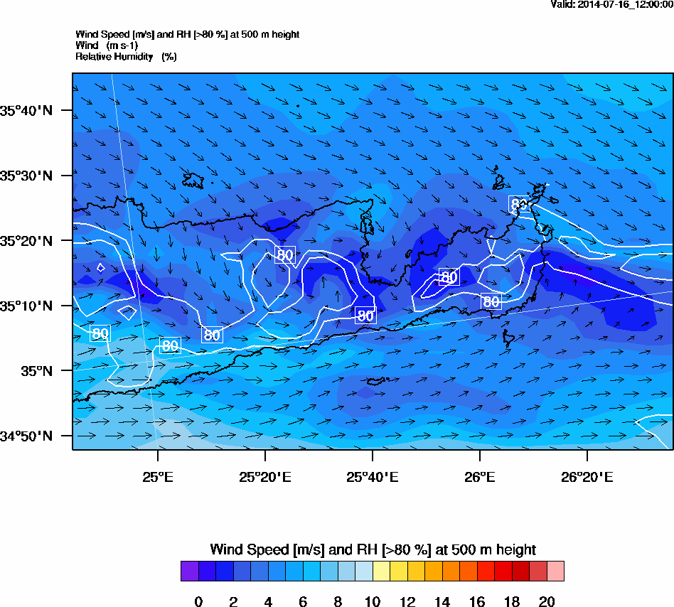 Graph 2: arw047.png - Wind Speed [m/s] and RH [>80%] at 500 m height